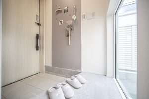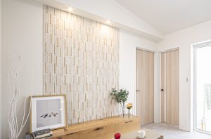 エコカラットは、空気まで美しくする壁。無数の小さな孔が湿度を調整し、湿気や乾燥から守ってくれる。さらには気になるにおいや有害物質を吸着し、軽減してくれます。※現地写真(2025年11月撮影)