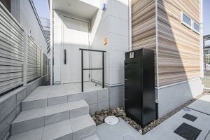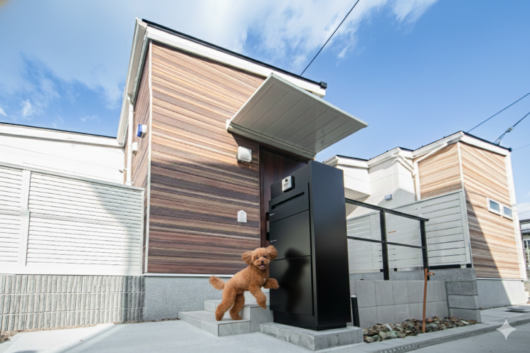 UNISON ミース高まり続ける、戸建て住宅向け宅配ボックスの需要に対し、シルエットの美しさをとことん追求し完成した「ミース」。※現地写真(2025年11月撮影)